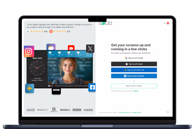 Everything you need to power up your screens – player, power adapters for your region, and full Look platform compatibility. Just connect, activate, and start playback.
